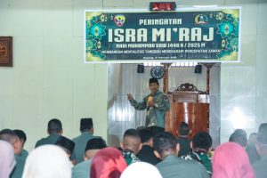 Kupang,nwartapedia.com – Dalam rangka memperingati Isra Mi’raj Nabi Muhammad SAW, Korem 161/Wira Sakti menggelar acara bersama prajurit, PNS, dan Persit KCK Koorcab Rem 161 PD IX/Udayana di Masjid Nurul Whathan Kuanino, Kota Kupang. Acara ini mengusung tema “Membangun Mentalitas Tangguh Menghadapi Percepatan Zaman”, yang bertujuan untuk memperkuat keimanan serta mentalitas prajurit dan keluarga besar Korem 161/WS di tengah pesatnya perkembangan teknologi informasi.