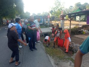 “Mari kita budayakan membuang sampah pada tempatnya dan menjaga lingkungan sekitar,”anaknya